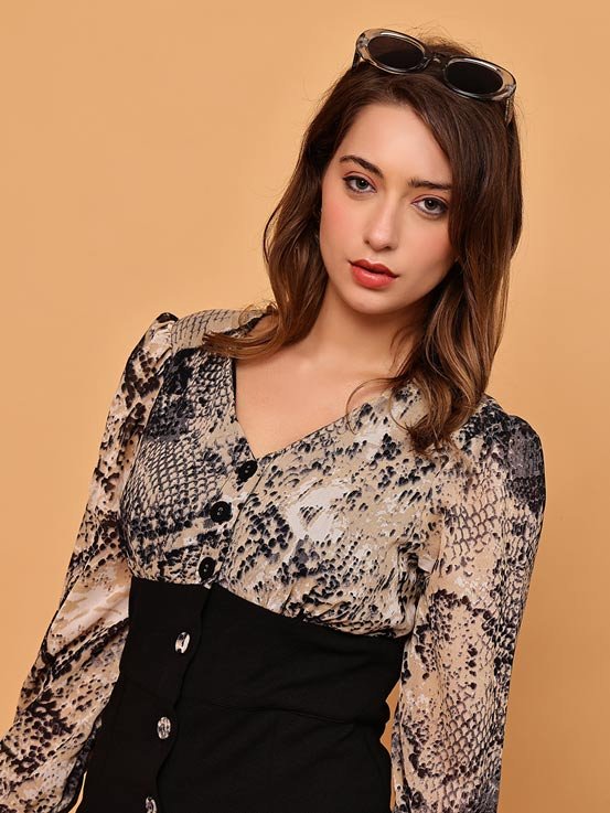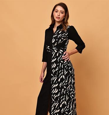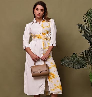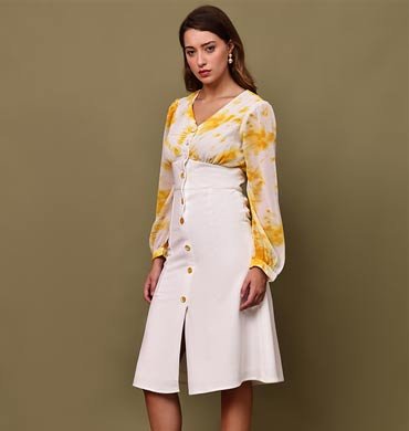 Tie & Dye Printed Panel Buttoned Midi Dress