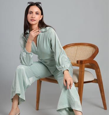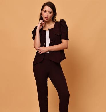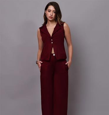 Stylish Office wear Mauve Belted peplum Top & Trouser