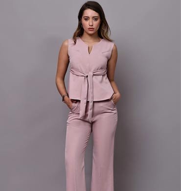 Stylish Office wear Mauve Belted peplum Top & Trouser
