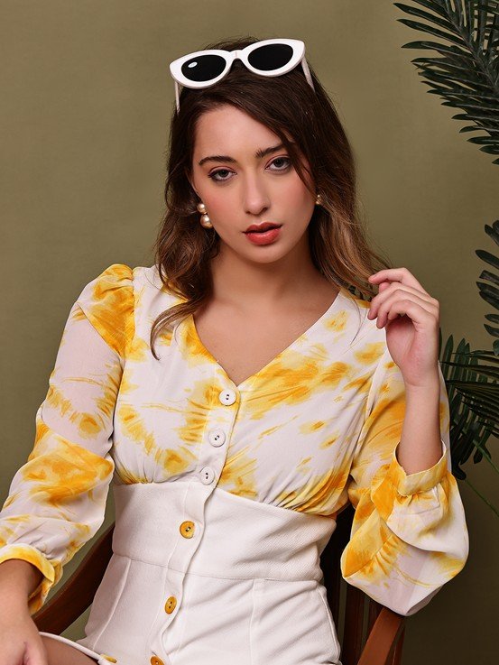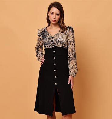 Tie & Dye Printed Panel Buttoned Midi Dress